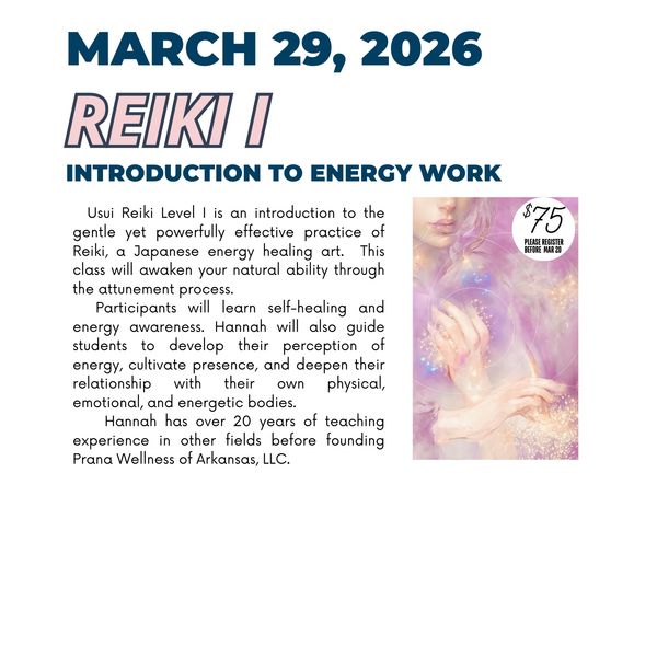 *Mar 29 Class is Open* Hannah will be guiding an introduction to Energy Work thru Reiki I training and attunement. This level of training is focused on self-healing, a practice your body will naturally complete if we provide it with the right foundation and mindset. This class is a pre-requisite for Reiki II. It is also a great refresher course for anyone that wants to restart their Reiki practice. *Reiki II will be offered the same day, but requires a separate registration.*